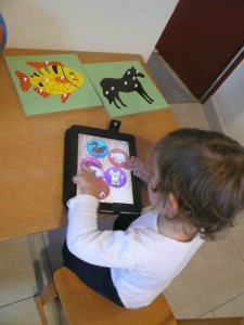 BBG va chercher le « papad » (pour ipad) tout seul dans la maison. Il le trouve toujours ! Et en quelques jours, il a compris l’interface du nouvel outil. Il fait les puzzles interactifs adaptés à son âge et j’ai remarqué que cela avait accéléré sa facilité à faire les « vrais » puzzles en bois ! Etant accidenté en ce moment, cela lui permet de moins bouger. Dans quelques temps il courra et sautera de nouveau partout et la question de l’ordinateur se posera moins.