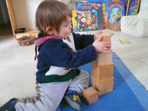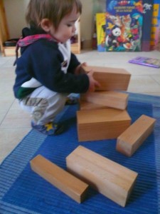 - et deux grosses boîtes remplies de cubes très lourds en bois massif. J’ai tout de suite trouvé quelque chose à faire avec :